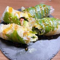サーモンアボカドパクチー、生ハム大葉で作りました〜🙌