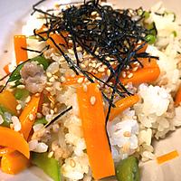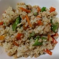 絹さやとにんじんの鶏そぼろ混ぜごはん レシピ・作り方