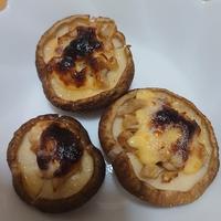椎茸って高いですよね。肉厚しいたけ6個でお手頃価格で買えたので、椎茸をとことん味わいたくて、やってみました。毎日仕事の後疲れて果てているので皆さんのたべれぽのアレンジを試したかったのですが結局疲れてしまっていたため、しんの微塵切りにマヨを混ぜてからカサに入れ、上にピザチーズをかけて焼きました。こんなに簡単なのにすごく美味しくて倍量作れば良かったです!なんで椎茸はこんなに高いんだ〜!!