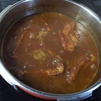 スペアリブが売っておらず、バックリブで挑戦。お肉ホロホロで美味しすぎました!煮汁もお肉の旨味が溶け出していて美味しい◎濃厚なデミグラスソースのようでした。