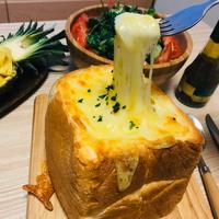 くり抜いたパンは棒状に切り一緒にトースターで焼いてグラタンにつけながら食べてください。トースターに入らない場合は、オーブン200℃で10〜15分焼いてチーズに焦げ目がついたら大丈夫です。 お使いのトースター機種によって焼き加減が異なりますので、様子を見ながらご調整ください。今回は1000W200℃で焼いています。トースターは庫内が狭く、食材と熱源の距離が近いため、加熱中の食材の油が落ちたり、油はねなどが原因で発煙、発火の恐れがあります。加熱中は目を離さないでください。 途中でパンが焦げてしまいそうな時はアルミホイルをかぶせてください。その際は、アルミホイルが熱源に直接触れると溶けてしまう恐れがあります。熱源に触れないようご注意ください。