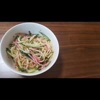 きゅうりも入れました。玉ねぎや野菜沢山入れても美味しそうです。酸味がとてもよかったです