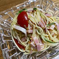 ミニトマトとハムを使ったスパゲティサラダをハニーマスタードのドレッシングで和えてみました。 洋食の副菜や付け合わせとしてもオススメですよ。普段とひと味違うスパサラが食べたいときに、ぜひ作ってみてください。