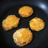 - 3 フライパンにサラダ油を中火で熱し、2を適量ずつ置き、両面にこんがり焼き色がつくまで焼いて、一旦取り出します。