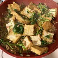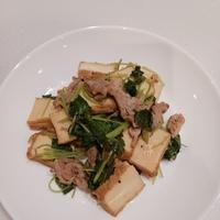 厚揚げと三つ葉の中華風の炒め物のご紹介です。厚揚げに、三つ葉と五香粉の香りがよく合い、ついついお箸が止まらなくなりますよ。ごはんのおかずにも、お酒のおつまみにもおすすめなので、ぜひお試しくださいね。