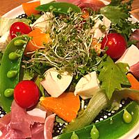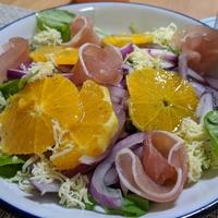 生ハムの塩味とオレンジの甘味がほどよくて、ドレッシングも美味しかったです❤️