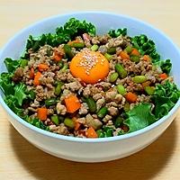 グリーンリーフの上に ご飯🍚→炒めた具材を盛り付けました❤︎⃜