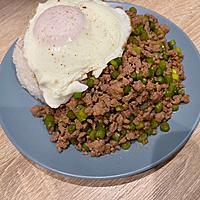 味付けが美味しそうだったので作りました。みじん切りにするのがめんどくさくて、ザク切り。ひき肉がなかったので、豚ロース厚切りを細く切っただけの、適当まるだし料理です笑