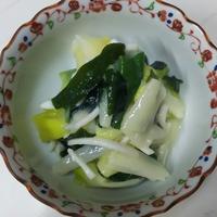ベビーホタテで代用しましたが、蒸し暑い季節に爽やかな副菜が添えられました。葱の下処理が分かって良かった(^^♪