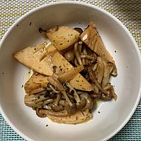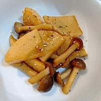 タケノコとしめじを香ばしいバター醤油味で炒めました。ごはんおかずにはもちろん、お酒のおつまみにも合います。生のタケノコが手に入る時期には、ひと手間かけて生のタケノコを使ってもおいしいですよ。ぜひお試しくださいね。