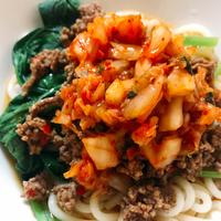 簡単!小松菜とひき肉キムチうどん レシピ・作り方