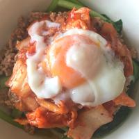 甜麺醤やキムチ、ひき肉の旨みと辛みが絶妙にマッチした一品です。小松菜の代わりにニラやほうれん草でも美味しく作れます。仕上げに温泉卵やごま油を加えると、まろやかさとコクが増してさらに美味しくなります。材料を混ぜ合わせるだけの簡単レシピなのに、キムチの酸味とひき肉の甘みが見事に調和。うどんだけでなく、ごはんにのせても相性抜群です。