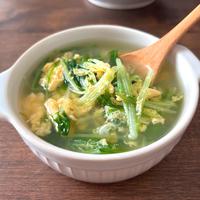 「ふわふわ卵と水菜のスープ」の作り方を簡単で分かりやすいレシピ動画で紹介しています。