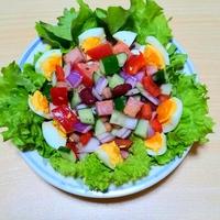 「カラフル野菜!ドレッシングも手作りのチョップドサラダ」の作り方を簡単で分かりやすいレシピ動画で紹介しています。
