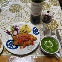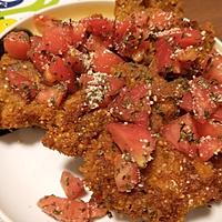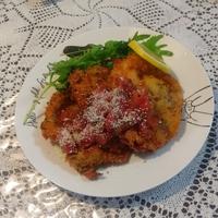 初めてミラノ風カツレツに挑戦。トマトソースはあっさりしていて、油ものには最適