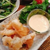 今が旬の鱈を軽い衣でサクッと揚げてちょっとピリ辛なソースを添えてます。お好みでナンプラーが好きな方は入れても大丈夫です。その場合はナンプラー小さじ1を入れて下さい。ニンニクの香ばしい匂いでお酒が進みそうですね。衣にハーブなどを混ぜてワインのおつまみにも大変身します。