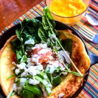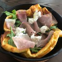 ふんわりした食感がたまらないダッチベイビーのご紹介です。今回はプロシュートと、ルッコラをのせて朝ごはんや、ランチにぴったりな一品に仕上げてみました。お好きな具材をのせてアレンジしてみてください。見た目も華やかなのでおもてなしにもおすすめです。
