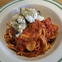 タラとトマトの相性が抜群で、魚の旨みとトマトの酸味が見事に調和します。モッツァレラチーズをトッピングすれば、コクと深みが増して更に美味しく。しめじ、ししとう、ほうれん草などお好みの野菜を加えてアレンジも楽しめます。ワンパン調理で手軽に作れるのが魅力ですが、パスタの茹で加減には少し注意が必要。魚介の出汁が効いた本格的なパスタに仕上がり、家族にも大好評です。