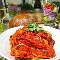 白ワインがない場合は普通の料理酒でも代用できます。トマトソースは多少煮詰めた方が甘みが出ます。ワタリガニはカットしてあるもの使うとより調理がラクです。生クリームを入れたら火を弱めてからスパゲッティを入れて絡ませてください。