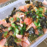 - 5 お皿に盛り付けて、残りの青シソと刻み海苔をかけて完成です。