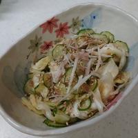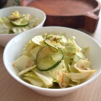 - 1 キャベツをざく切りに、きゅうりを薄い輪切りにします。