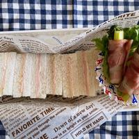 - 2 ロースハムを2枚のせ、はさみます。同様にもう1つ作ります。