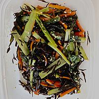 - 1 ひじきはパッケージの表記通りに水で戻し、流水で洗い、水気を切ります。