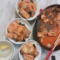 - 3 熱したフライパンにごま油をひき、2とキムチを中火で炒めます。