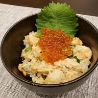 - 6 ボウルに入れたごはんに5を入れて混ぜ合わせ、器に盛ってイクラをのせたら完成です。