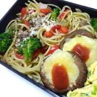 家にある具材(ベーコン、舞茸、ブロッコリー、パプリカ)で作りました。粉チーズとブラックペッパーも振りました。オリーブオイルをやや多めにし、お弁当に入れてもくっつかず美味しく食べられました。