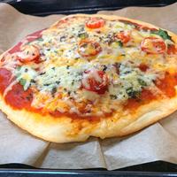 発酵なしの、簡単にできるクリスピーピザです。サクッとした食感がとても美味しいです。自分でピザが作れるとアレンジは自由自在です。いろいろな具材をのせてお楽しみくださいね。パパッと作れるピザなので、是非お試しください!