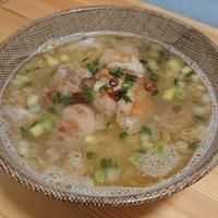 味が薄いと言っている方がいたので、スープの塩を2倍で作りましたが、鶏肉に味を付けたので、少ししょっぱくなってしまいました。