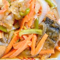 脂がジュワッと滲み出る焼きサバと彩り豊かな野菜が絶妙にマッチする一品です。玉ねぎ、人参、ピーマンなどの野菜はシャキシャキとした食感を楽しめ、甘酢っぱい南蛮だれがサバの旨みを引き立てます。サッパリとした味わいは夏バテ予防にもぴったり。野菜を軽く加熱することで辛味が抜け、より食べやすくなります。サバは塩を振る時に酒も振ることで生臭さも消えます。