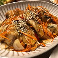 ピクルスの漬け液が残っていたので、南蛮漬けにしたくて参考にしました。骨取り済みサバの文化干しですが、片栗粉つけただけで揚げ、とても美味しく頂きました。サバの南蛮漬けって、初めてでしたがしかも塩サバ😂でもイケます。小鯵の下処理するより簡単で塩サバ万歳。実は5尾全て揚げてしまい、昨夜3人で沢山食べ写真撮り忘れたので、シッポばかりの残りですが2日目も美味しいです。