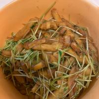 さつまいもと豆苗をオイスターソースで簡単に炒めました。しっかりした味付けで、お酒にもご飯にも合います。さつまいものほっくりした食感と豆苗のシャキシャキ感が楽しめる一品です。簡単ですので、是非お試しください。