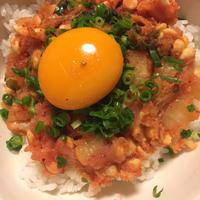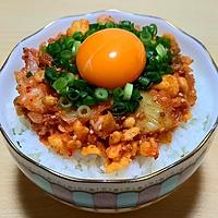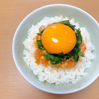ピリ辛の明太子とキムチが相性抜群の、簡単どんぶりものレシピです。ごま油の香りも食欲をそそり、サクサクとした天かすの食感もたまりません。作り方も混ぜるだけなのでとてもお手軽です。卵黄をよく混ぜてお召し上がりくださいね。