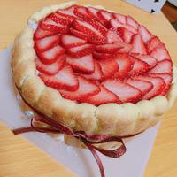 ビスキュイ崩れました。むずかしい…いちごの季節なので上にピュレを作って流しました。