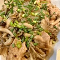 干し椎茸→しめじ舞茸各1パック、戻し汁→白だし50ml+水250ml、糸唐辛子→青ねぎで代用。春雨70g・鶏もも1枚にして4人前にしました。