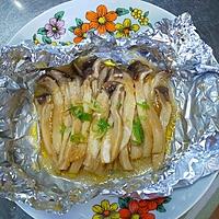 - 1 アルミホイルにエリンギを割きながらのせ、(A)をかけて有塩バターをのせ、包みます。