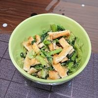 あと一品、で作りました。見た目より美味しい!小松菜レンチンで簡単。油揚げは油抜きせず、フライパンでOKです。
