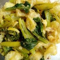 残った揚げと小松菜がいつもとは違う味で調理できてとても助かりました。焼いた揚げの旨味で薄めの味でも美味しかったです。