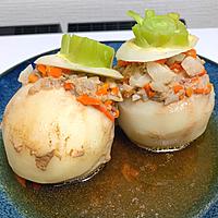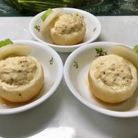 ほっこり!簡単、おいしい! カブを丸ごと使って器に見立てて作った肉詰めです。 見た目もかわいいのでぜひ作ってみてください。 お好みで、スープに水溶き片栗粉でとろみをつけてあんかけ風にしてもおいしいです!