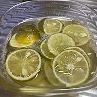 - 2 大きめの耐熱ボウルに1、はちみつ、水、を入れて、ふんわりとラップをかけます。すだちがしんなりして、はちみつになじむまで600Wの電子レンジで2分ほど加熱し、粗熱を取り、ザルでこします。