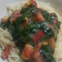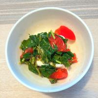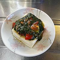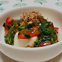 他のメニューの分量が多かったので、今回は豆腐無しで上の部分だけ作りました。(モロヘイヤとトマトのお浸し風です)