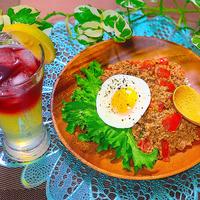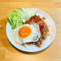 トマトたっぷりのそぼろ丼でワンプレートごはんはいかがでしょうか。 トマトの甘みと豚ひき肉のジューシーな旨味がよく合う一品です。目玉焼きと一緒に食べるとまろやかな味わいになり、とてもおいしいですよ。ぜひお試しくださいね。