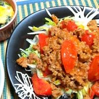 味噌味そぼろと温かいトマトの甘みがすごく美味しい♥