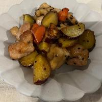 鶏モモで代用(130g)、ごぼうとれんこんはなしで。鶏は片栗粉まぶして普通に炒めて、さつまいもと人参は4分半チンして、一緒に炒めました。これで一人分って感じでした!