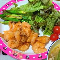 アスパラは塩胡椒で。エビに下味つけると美味しい!