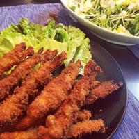 - 4 2に薄力粉と3を付け、パン粉をまぶしたら、170℃の油できつね色になるまで揚げたら完成です。