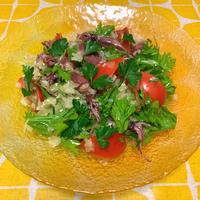 お洒落な味って感じ。サッパリして美味しかったです!タバスコは入れ過ぎに注意です。足りなければ後から足せるし😊わさび菜でカサ増ししてサラダっぽくしました。玉ねぎは水にさらしました。